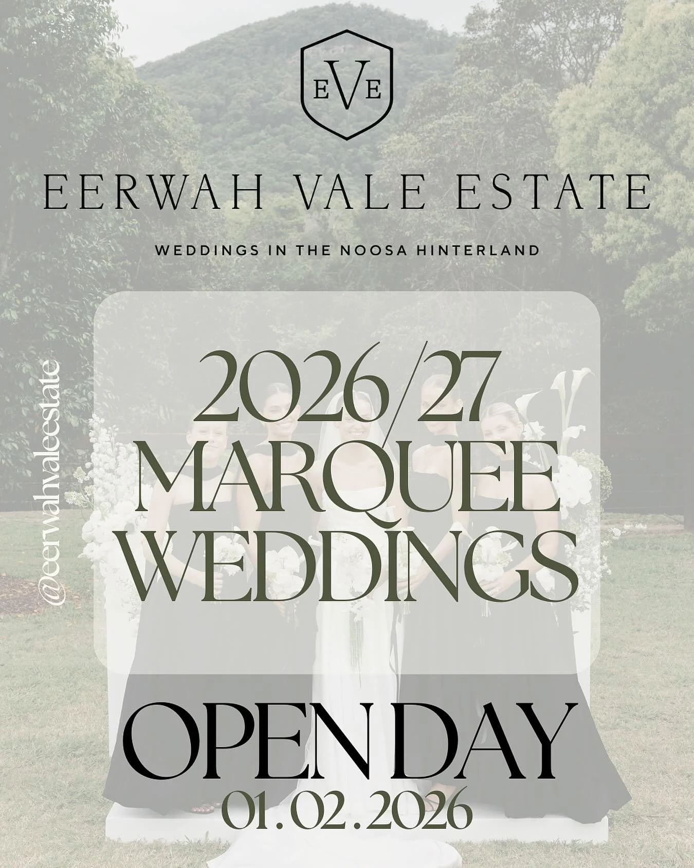 Before Eerwah Vale Estate began its transformation, the owners’ daughter, Emily, married her Emmit beneath the mountain, followed by an outdoor cocktail reception near The White House.